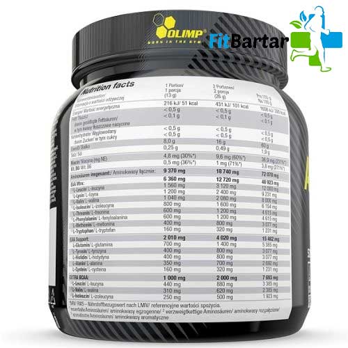 جدول ترکیبات آمینو پودری 520 گرمی الیمپ (Olimp Amino EAA)